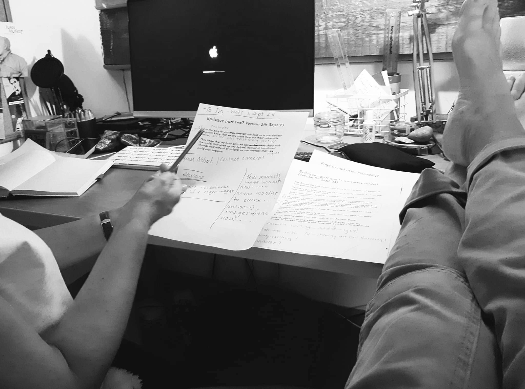 The story and words are mine, the drawings are by Maria, an artist and poet, who was, and always has been, here throughout.