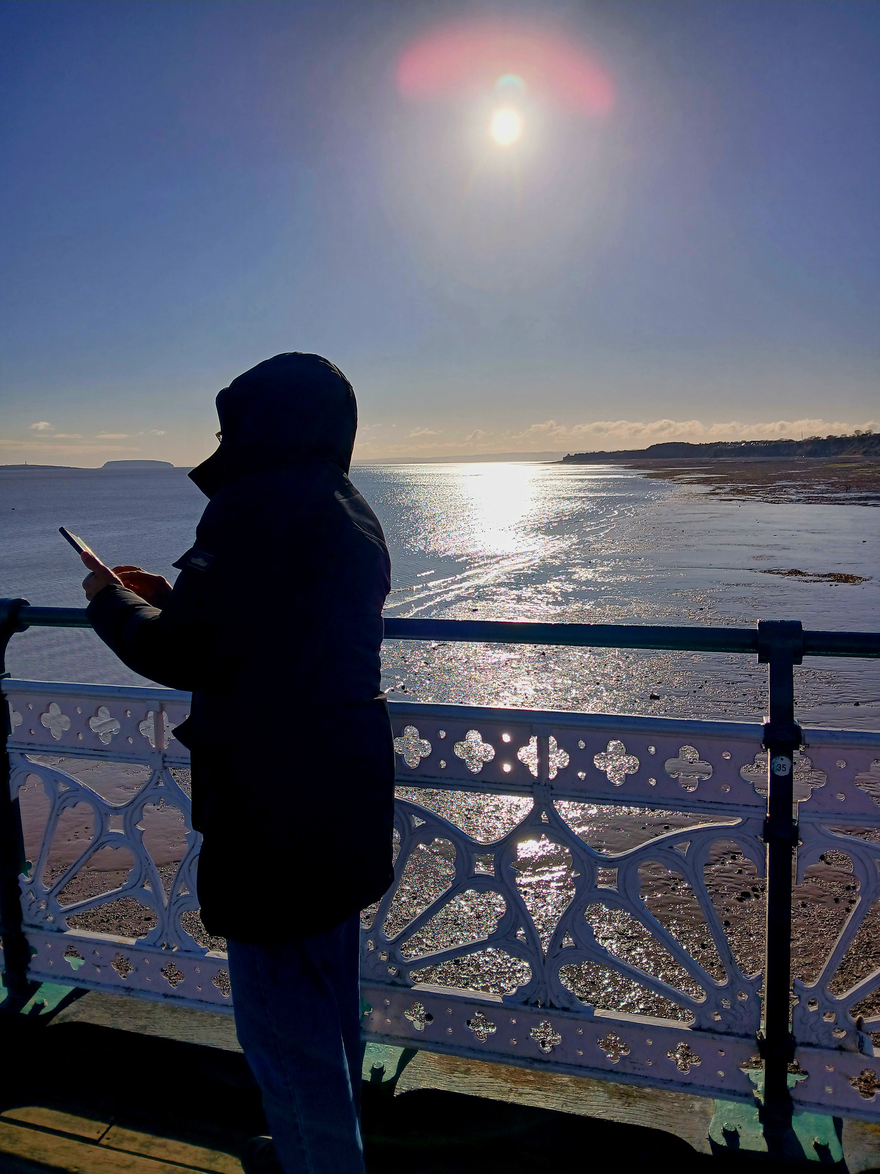 I seem to be grieving. Not for the dead but for the living. For things I can’t make better. What has set it off? Family birthdays. November darkness. My first autumn on reduced anti-depressants for a decade. All of these. None of these. I can’t get out the house. I’ve missed yoga again. I should get some air. Can’t seem to move. I’m heavy. I mustn’t waste the day. Where’s ML? I phone her. Can you come and get me out the house? She returns. Drives us to the sea front. I get a coffee and pastry which will give me cramps but is worth it today. We walk along the pier. The light is poetry.