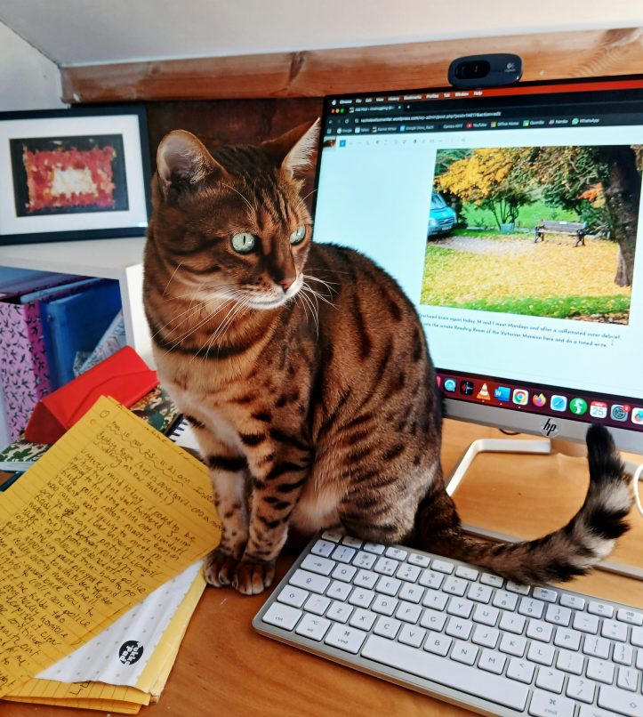Still tearful but grounded after sleeping better last night. For air I walk to get groceries for dinner. It is sunny and gorgeous out there. After, I get straight up to the attic to work. Sefi is happy about this – it’s her favourite set up, though once I start I can’t stop, and she feels compelled to intercept my hyper-focus.